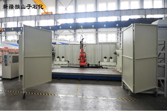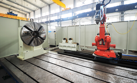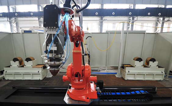 新松公司為石化冶金行業(yè)定制的光纖激光機(jī)器人修復(fù)系統(tǒng),選配光纖傳導(dǎo)的大功率光纖激光器,將聚焦系統(tǒng)連接在機(jī)器人手腕上,集成為柔性激光加工設(shè)備,運(yùn)動(dòng)的執(zhí)行機(jī)構(gòu)為激光束掃描運(yùn)動(dòng)的機(jī)器人+工件旋轉(zhuǎn)的轉(zhuǎn)臺(tái)系統(tǒng),可以實(shí)現(xiàn)各種形狀零件的全自動(dòng)激光熔覆和激光熱處理加工。