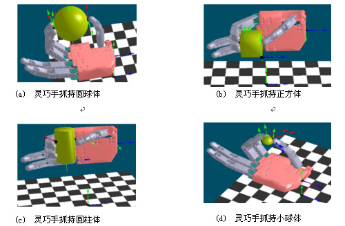 如圖3所示,五指靈巧手抓持典型物體仿真。