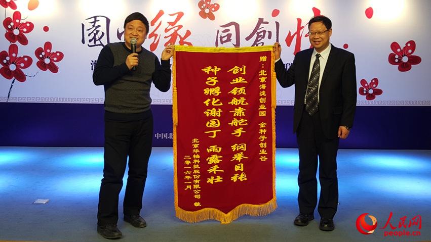 人民網(wǎng)北京1月23日電(方開燕)1月22日,由北京中關村海淀創(chuàng)業(yè)園舉辦的“海淀創(chuàng)業(yè)園創(chuàng)業(yè)者俱樂部2016年新春聯(lián)誼會”活動在中關村創(chuàng)業(yè)大廈舉辦。原北京海外學人中心副主任趙峰、北京海外學人中心運行保障部部長孫偉、海淀區(qū)人大常委會教科文衛(wèi)工委副主任委員趙新鳴、北京市僑聯(lián)副主席石岳、上地街道辦主任冀國瑞、海淀創(chuàng)業(yè)園主任趙新良等領導,北京奧瑞金種業(yè)股份有限公司副總裁韓庚瑞、北京智立醫(yī)學技術股份有限公司董事長王洪利等優(yōu)秀企業(yè)家代表齊聚一堂,共話“同創(chuàng)”情誼,共創(chuàng)海淀創(chuàng)業(yè)園“高端、共贏,建設世界一流孵化器”目標。